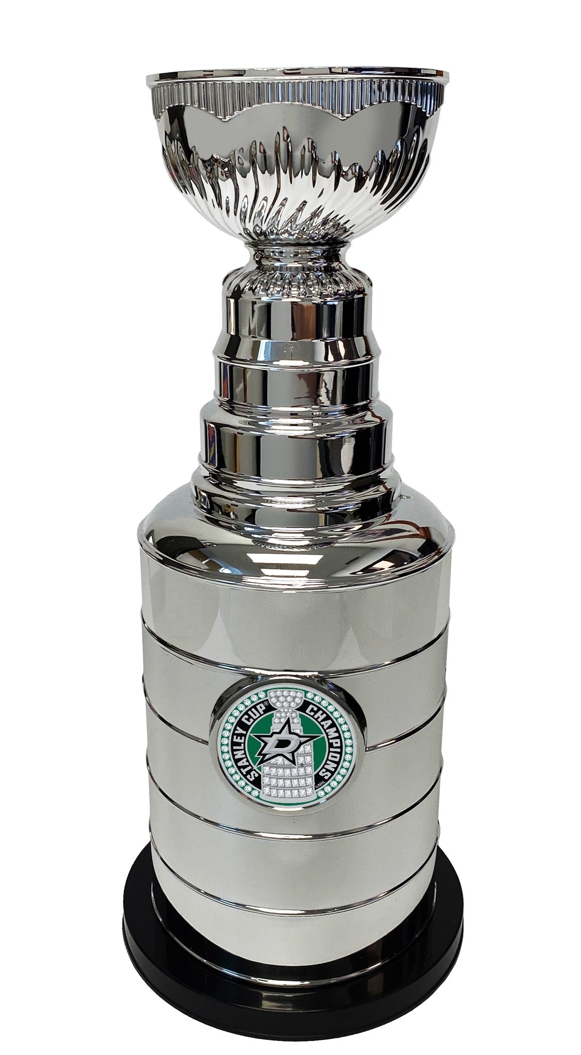 This 14” Trimflexx Dallas Stars Stanley Cup Coin Bank looks great as a decorative item in your office or fan cave. The bold metallic emblem featuring raised 3D elements across the Stars name and logo, makes this a truly unique addition to your collection.