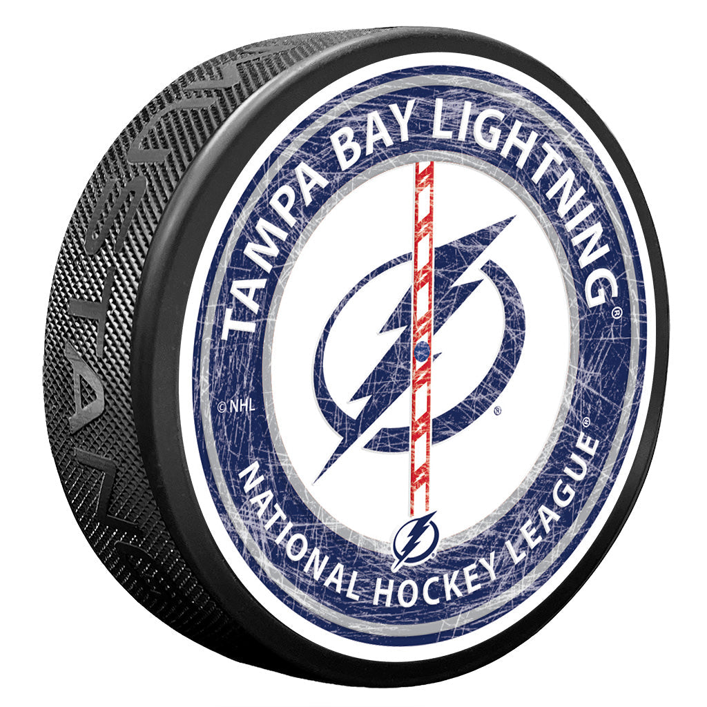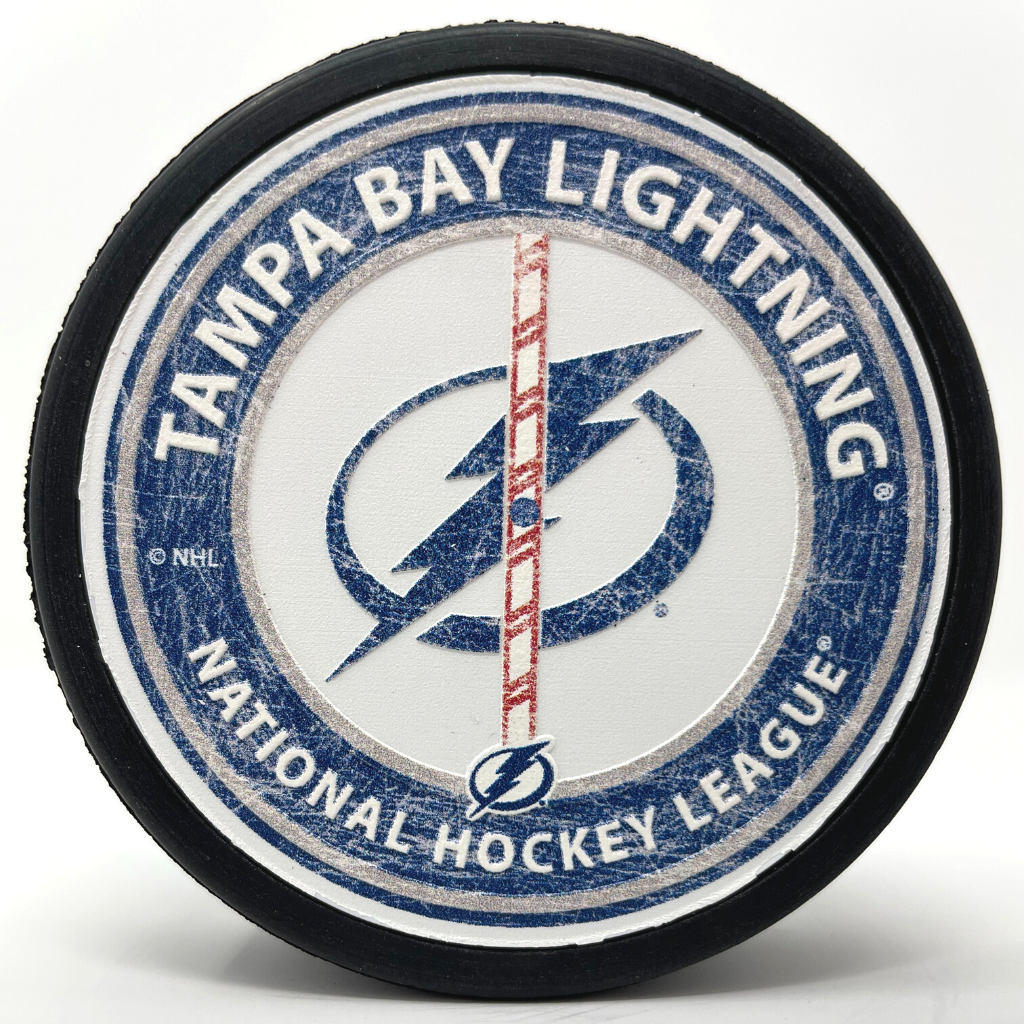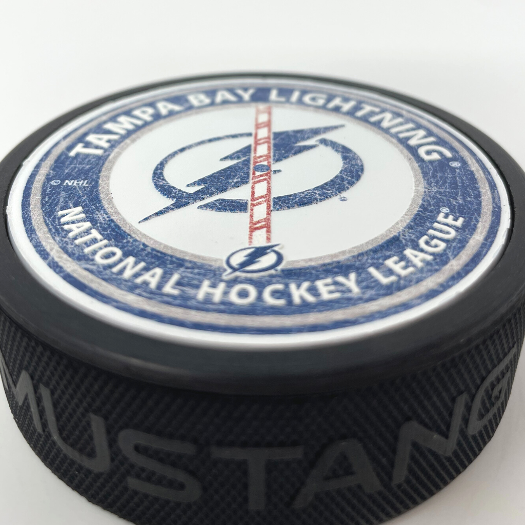 This unique Center Ice Tampa Bay Lightning Puck is designed with the Lightning's center ice logo. Look closely and you will see the red line representing center ice. The 3D engraving adds texture that you won’t find with just a regular printed puck, making this a stand-out in your collection!