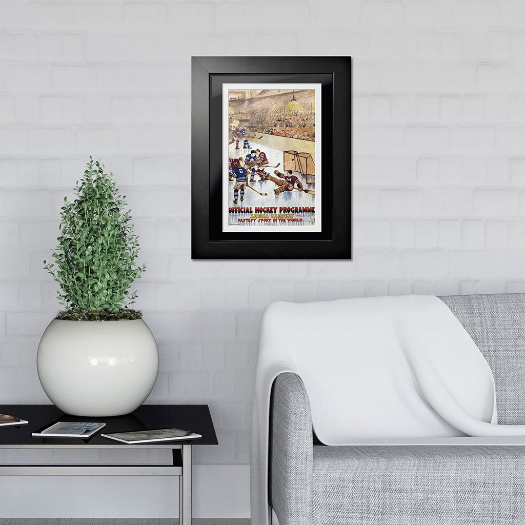 In the early days, long before cell phones and social media, hockey fans would arrive at their arena anxious to buy the latest game program giving them the latest info they needed to follow their favorite team. The advent of digital design and sophisticated photography has dramatically transformed the look and feel of the classic game-night program that captured the attention of fans. As early as the 1920’s, portraits and caricatures captured the scope of what fans would find at the rink. This early Maple Leaf Gardens program cover featured Mutual Street Arena, initially called Arena Gardens or just the Arena, was an ice hockey arena from 1912 until 1931, with the opening of Maple Leaf Gardens, it was the premier site of ice hockey in Toronto, being home to teams from the National Hockey Association (NHA), the National Hockey League (NHL), the Ontario Hockey Association (OHA) and the International Hockey League (IHL). It was the first home of the Toronto Maple Leafs, who played at the arena under various names for their first 13½ seasons.