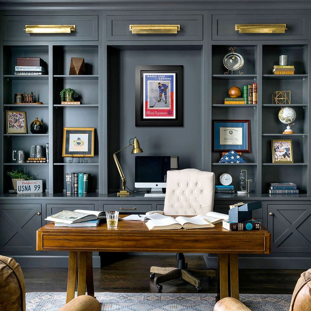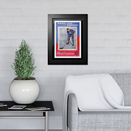 In the early days, long before cell phones and social media, hockey fans would arrive at their arena anxious to buy the latest game program giving them the latest info they needed to follow their favorite team. The advent of digital design and sophisticated photography has dramatically transformed the look and feel of the classic game-night program that captured the attention of fans. As early as the 1920’s, portraits and caricatures captured the scope of what fans would find at the rink. This early Maple Leaf Gardens program cover featured a unique illustration of a Leafs player skating.