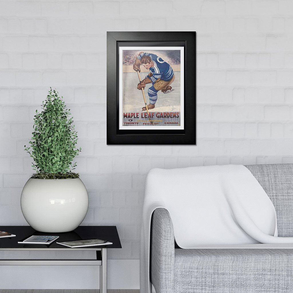 In the early days, long before cell phones and social media, hockey fans would arrive at their arena anxious to buy the latest game program giving them the latest info they needed to follow their favorite team. The advent of digital design and sophisticated photography has dramatically transformed the look and feel of the classic game-night program that captured the attention of fans. As early as the 1920’s, portraits and caricatures captured the scope of what fans would find at the rink. This early Maple Leaf Gardens program cover featured a unique illustration of a Leafs player shooting.