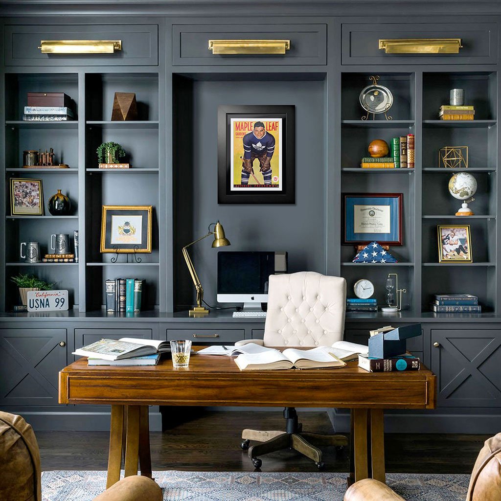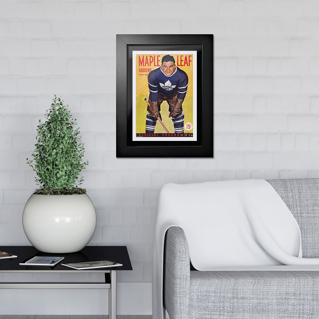 In the early days, long before cell phones and social media, hockey fans would arrive at their arena anxious to buy the latest game program giving them the latest info they needed to follow their favorite team. The advent of digital design and sophisticated photography has dramatically transformed the look and feel of the classic game-night program that captured the attention of fans. As early as the 1920s, portraits and caricatures captured the scope of what fans would find at the rink. This early Maple Leaf Gardens program cover featured a unique illustration of a Leafs taking a break.
