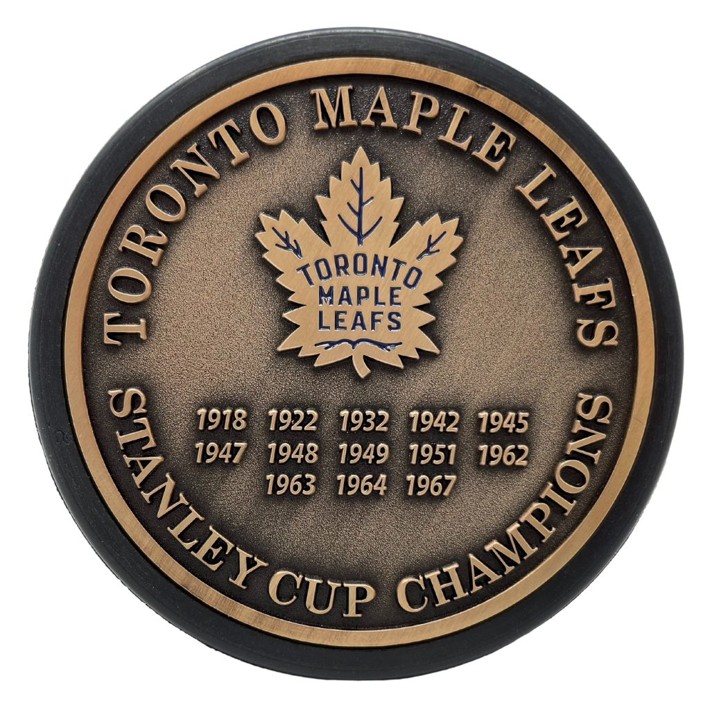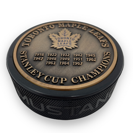 Toronto Maple Leafs Puck - Stanley Cup Years Gold Medallion