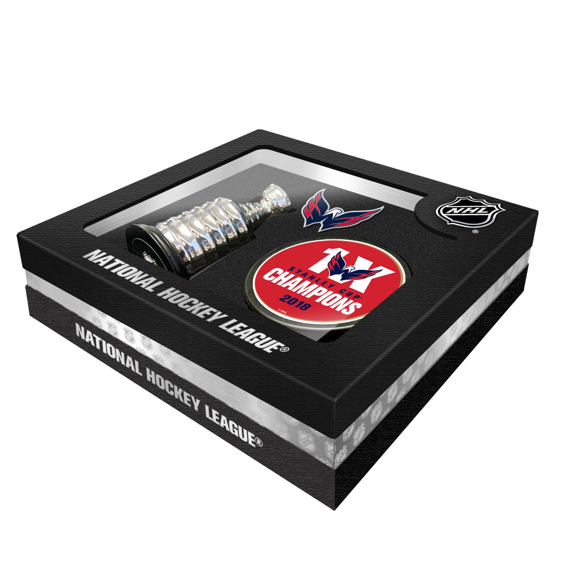 Washington Capitals Stanley Cup Champs Puck + Replica Cup Gift Box Set